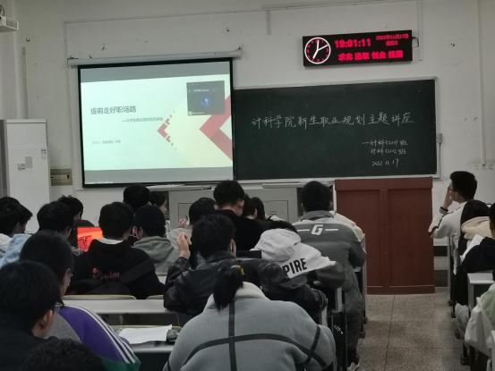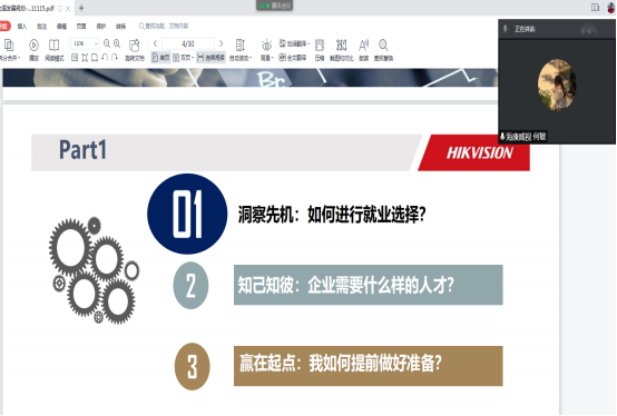 于2021年11月17日19:00,开展2021级新生线上职业规划教育,本次课程由海康威视公司何敏经理主讲,2021级全体同学参与此次活动。