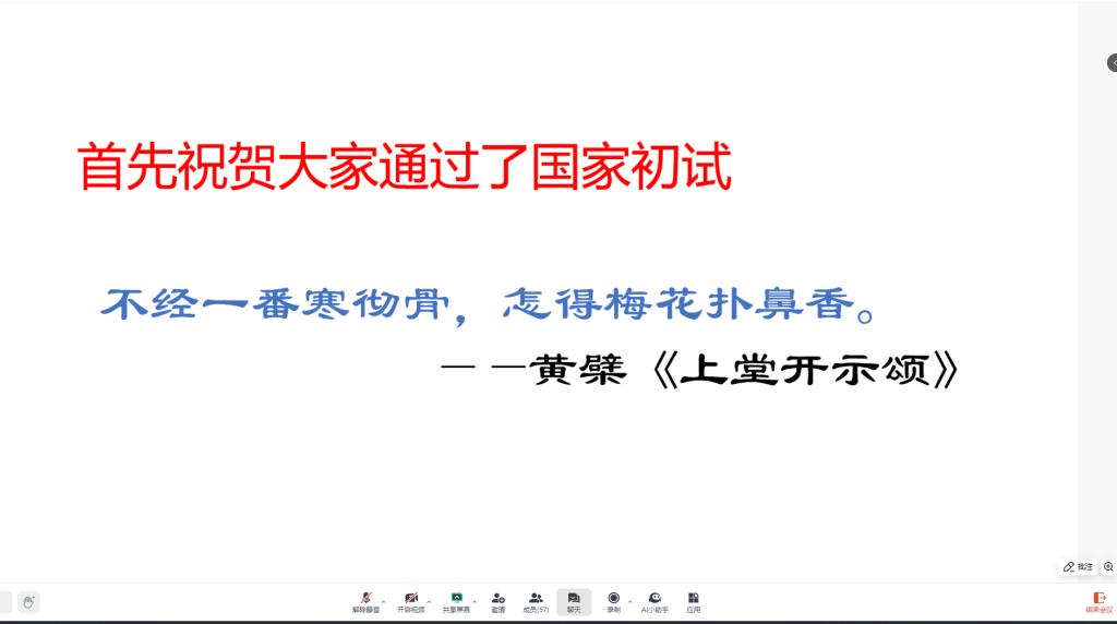 为精准提升考研学子复试竞争力,系统化解备考焦虑,3 月 14 日下午,欧乐影院 成功举办“研途领航・决胜复试”专题指导讲座。本次活动由辅导员余珺瑞主持,学院党委副书记肖彬、院长助理雷鸣、2020 级优秀校友严思龙、余涛等嘉宾与 70 余名考研学子云端相聚,共话复试突围之道。 活动伊始,雷鸣老师以 "知己知彼,百战不殆" 为主题,从国家研究生扩招政策切入,结合近年招生数据,深度解析复试考察重点与评分标准。他特别强调 "调剂黄金期" 的关键策略,建议同学们构建 "保底+冲刺" 的复试方案矩阵,通过模拟面试、查找学校复试信息等方式提升面试成功率。 “复试是信息战更是心理战。”严思龙校友以自身复试经历为例,详细拆解复试全流程的 “避坑指南”。他建议学弟学妹们在专业问答中注重理论与实践相结合,在英语口语测试时保持 “自信而不自负” 的状态,并现场演示了科研经历介绍的话术技巧。 余涛学长则聚焦笔试面试的实战技巧,通过典型例题解析,揭秘 “高分答案”的底层逻辑。他特别提醒同学们注意细节把控,如毕业设计的严谨性表达等,并分享了独家整理的 "高频问题应答模板"。 在互动环节,学子们就 “英语翻译如何准备”、“面试突发状况应对”等热点问题踊跃提问,三位嘉宾逐一给予针对性指导。会后,2021 级学生崔秭威表示:“这场讲座就像及时雨,特别是调剂策略和面试话术部分,让我对复试更有信心了!” 据悉,学院将持续开展 “考研护航计划”,通过简历打磨、模拟面试等定制化服务,助力学子顺利跨越 “上岸最后一公里”。