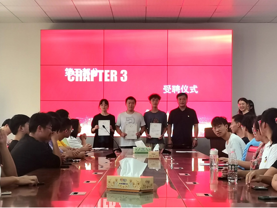 2021届学生组织成员名单,由颜书记为学生组织成员颁发聘书。大家纷纷鼓掌,予以祝贺。接着,由新一届计科团委学生会执行主席张君豪发言。他提到了自己在学生会中所学到知识技能,所经历到的有趣的事情,所感悟到的体会经验,并且希望2021届计科团委学生会能够再接再厉,共创辉煌。紧接着,新一届学生组织部门负责人代表刘书妍发言。她首先向大家表示了感谢,并承诺:2021届计科学院学生组织全体成员定能不负众望,以绝对真诚的心为计科学子服务的信心和决心。