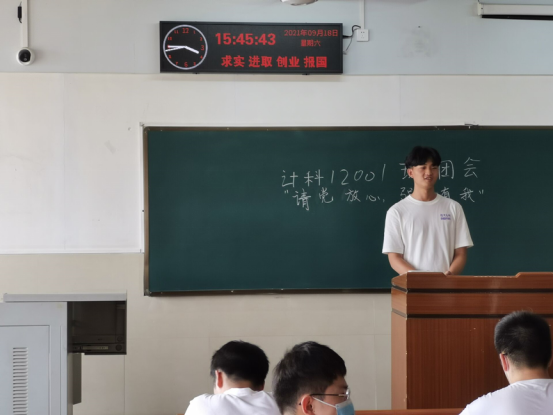 在9月以团支部为单位召开了“请党放心,强国有我”为主题的团会活动。本月示范团支部为计科12001班,团会主题为“请党放心,强国有我”,主讲人为该班团支书袁浩然同学,班级全体同学参加。
