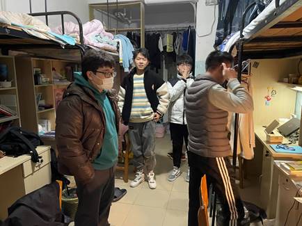 会后,全体辅导员分别对欧乐影院 学生入住的汉科公寓和人才公寓进行了集中检查。全体班主任下寝室开展周末晚点名,同时进行疫情防控政策宣讲和寝室安全卫生大检查。