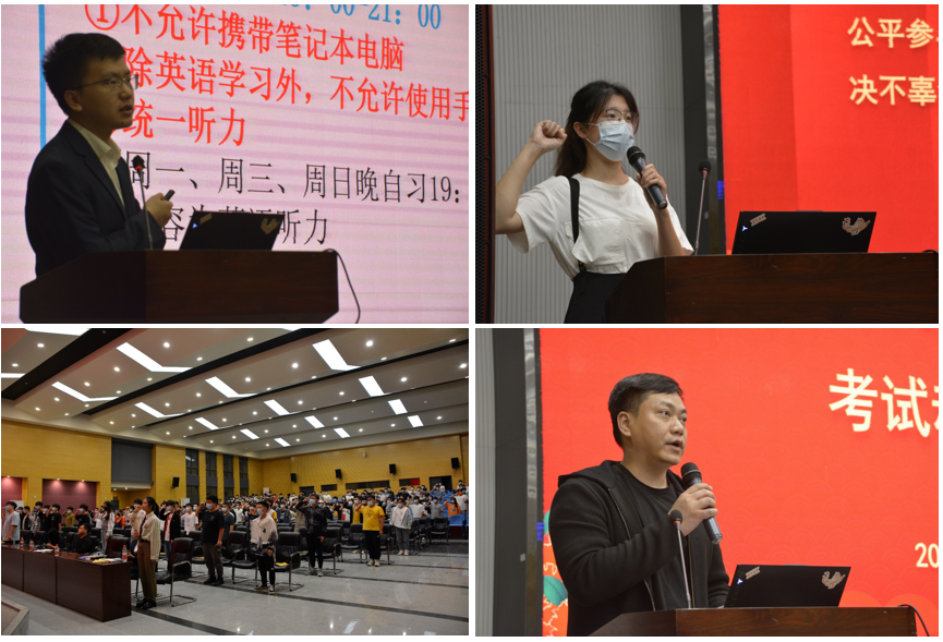 紧接着,21级辅导员张颖旭公布了学院《2021级最新早晚自习管理办法》,并指出早晚自习考勤与综合测评直接关联,呼吁同学们认真对待早晚自习,不要在该奋斗的年龄选择安逸。随后,计科类32102班的高昕同学带领同学们进行了备战四级暨诚信考试宣誓。在同学们高涨的热情中,大会逐渐接近尾声。最后,由学院党委副书记颜学俊宣读《欧乐影院