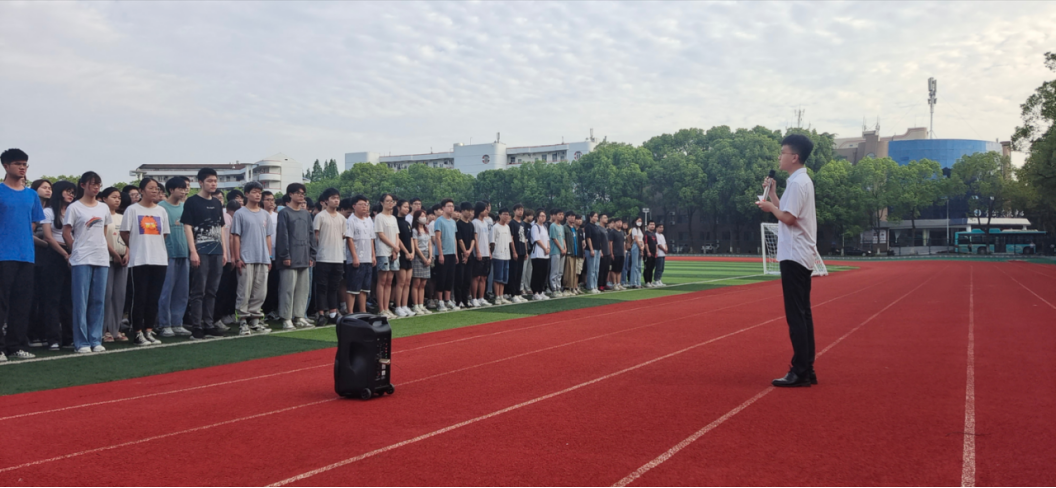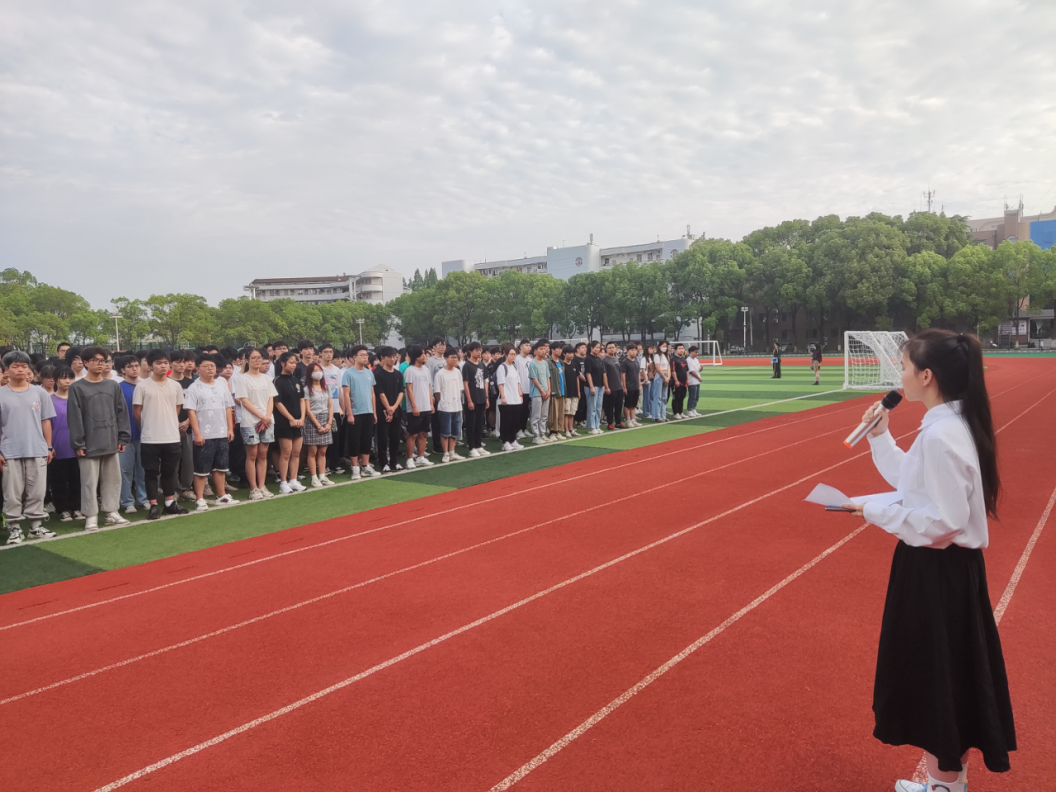 于西校区田径场举行升旗仪式。参与此次仪式的有学院2021级辅导员张颖旭、兼职辅导员高小梅以及全体2021级本科生,此次升旗仪式由计科类32102班高昕主持。