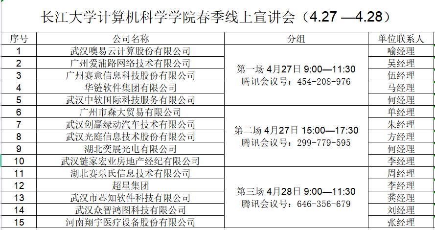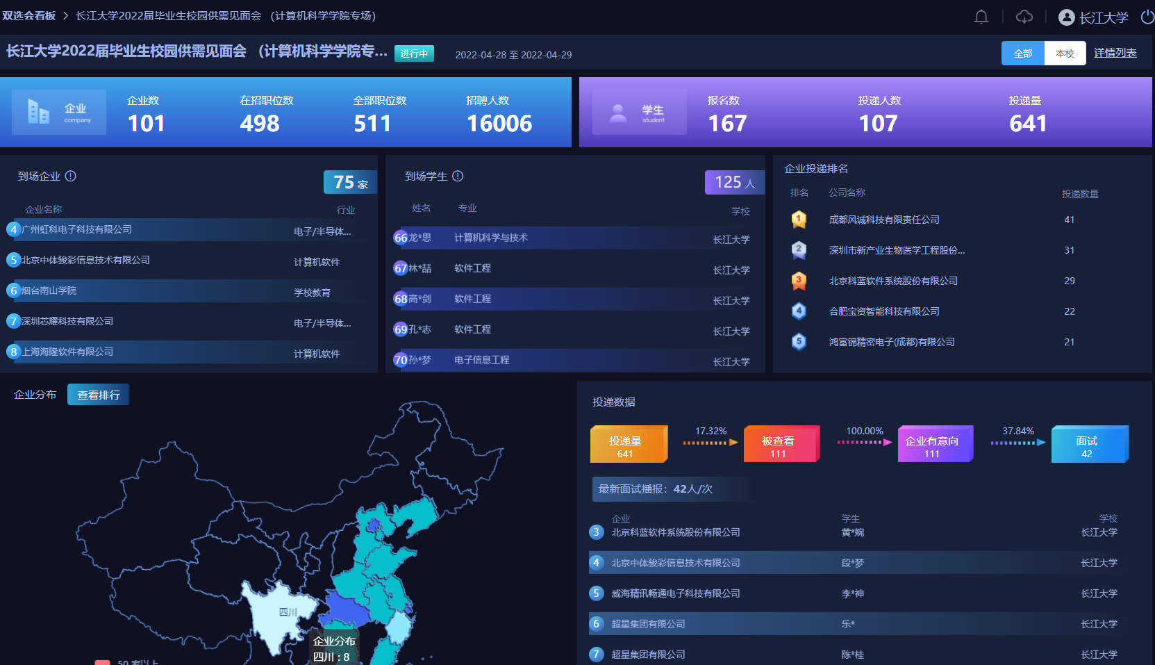 于2022年4月27日—4月28日举办了2022届毕业生春季校园招聘会(计科类专场)活动,本次活动采用“线上双选会”和“线上宣讲会”同时进行的方式开展。