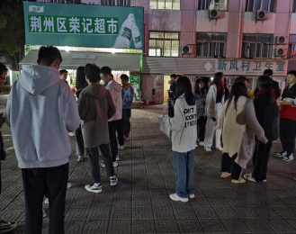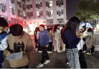 院辅导员余珺瑞,辅导员助理高昕、王晓森、齐浩琳以及21级各班副班长于晚十点在汉科5栋楼下集合进行周末晚点名及安全排查。