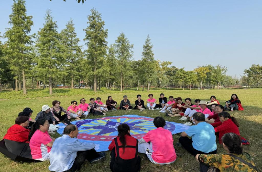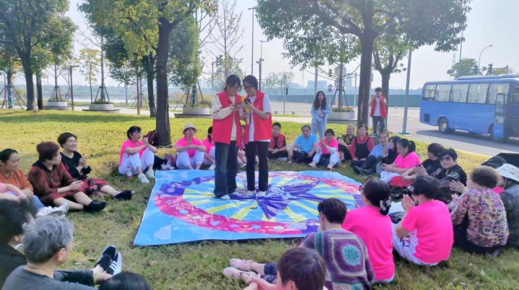 秋游第一站是爬纪山寺参观游览,在爬山过程中志愿者们与社区老人亲切交流,了解他们的生活状态和需求,老人也会跟志愿者们聊起子女现在的工作,平时生活中缺少陪伴,好在社区会组织许多丰富多彩的活动让他们平淡的生活中多了一些色彩。考虑到老人的体力不能适应长时间运动,下午的活动由志愿者们组织社区老人在草地上做“击鼓传花”、“唱歌跳舞比赛”等活动。为了让每一位老人都能参与进来展现自己,志愿者们会通过才艺表演等形式积极鼓励老人,活跃游戏氛围。最后,志愿者们为参加活动的每一位社区老人送上节日的祝福与问候,祝愿他们身体安康,阖家欢乐。