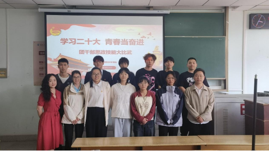 理论知识竞赛为笔试,限时30分钟。选手认真答题,突显广大团员干部良好的政治理论素养。经过激烈的笔试角逐,进入主题团课展示环节。选手们围绕党的百年历史学习、新时代的历史成就、百年未有之大变局等方面进行宣讲。经过一个小时的比赛,刘坦获一等奖;张雯炫、柏艳获二等奖;宋馨茹、郑子浩、罗靖宇获三等奖;王中川、柯虎、李诗怡获优秀奖。