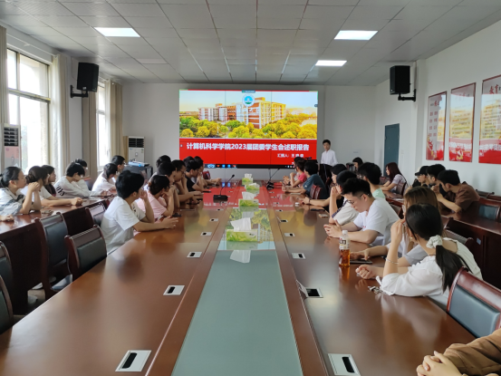 23届团委学生会执行主席王晓森对2023-2024年学生会的工作进行了汇报,他向同学们先简要介绍了学生会各部门职责情况,总结了这一年以来学生会所举办的活动并指出了当前存在的问题和挑战,也表达了对学生会未来的规划。随后,22级研究生贾瀛睿对研究生会工作进行了汇报,介绍了研究生的政治理论学习模式、研究生会举办的体育活动,她希望以后能有更多的人参与进来,将研究生会越办越好。