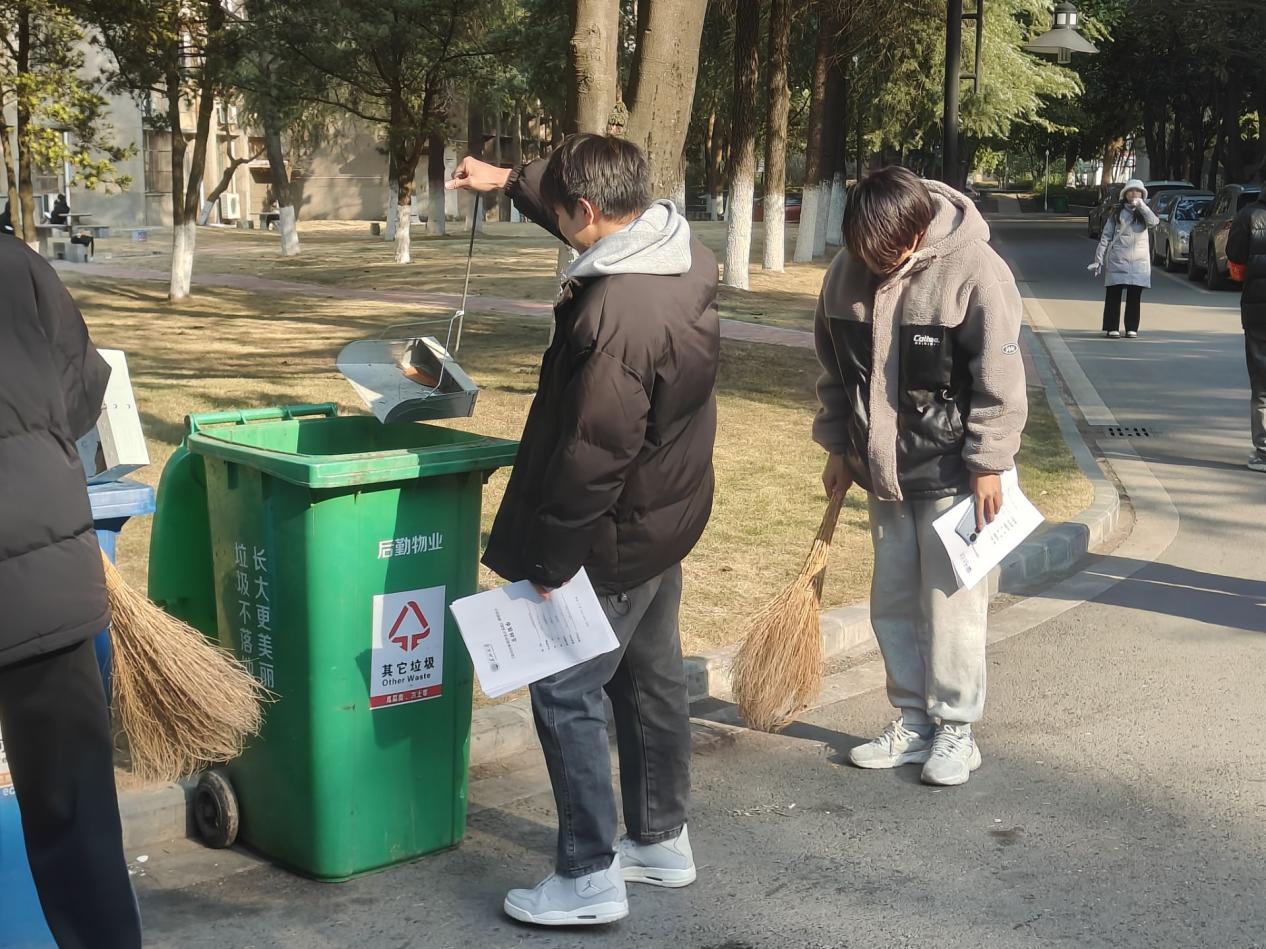 活动负责人合理分配各项劳动任务,叮嘱相关注意事项,师生们清扫马路和绿化带、捡拾烟头、清运垃圾,认真清扫责任区每一个角落。