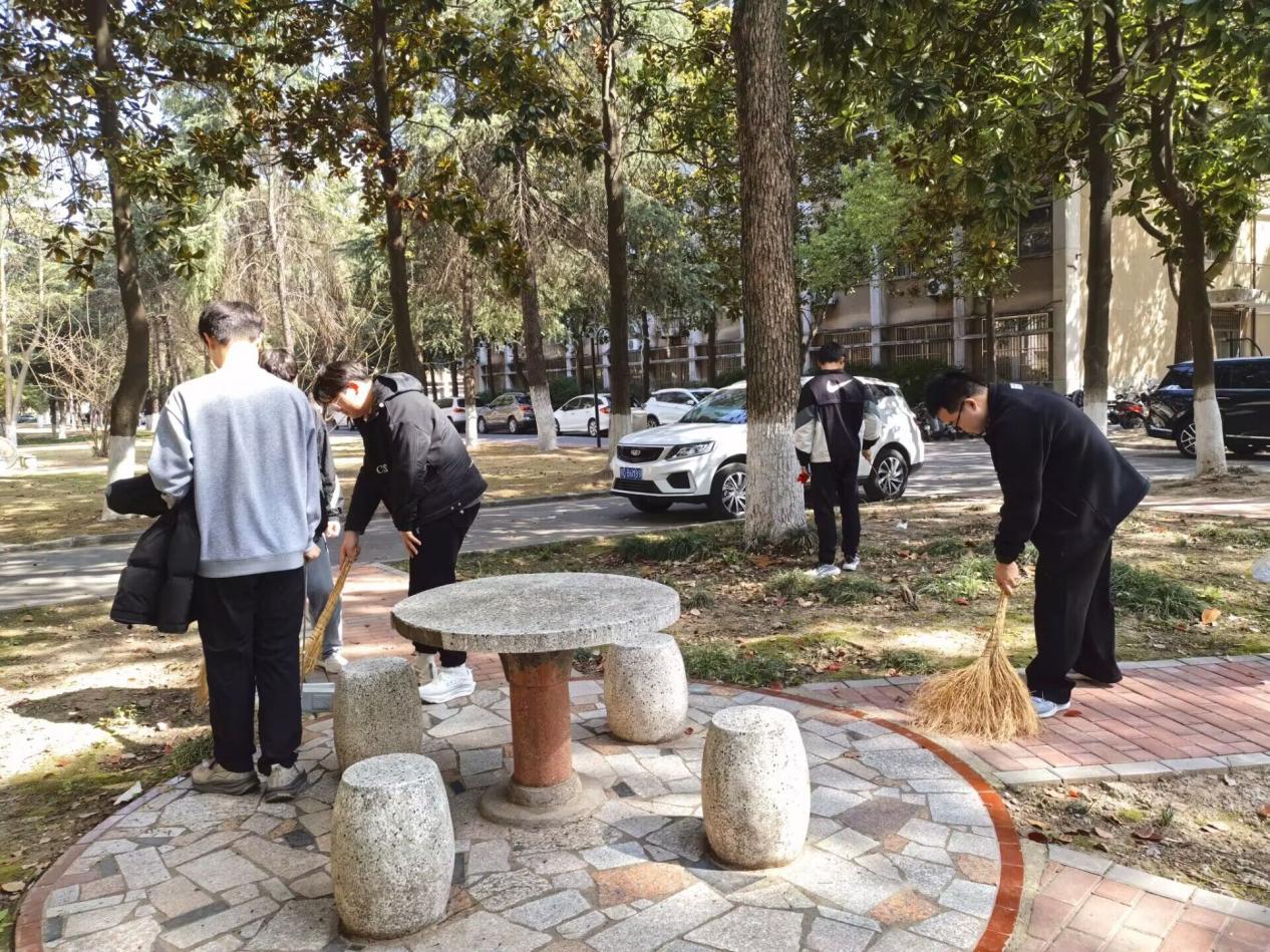 在学院负责老师的带领下,同学们手持扫帚、垃圾夹等工具,对路面落叶、卫生死角进行集中清理。经过一个小时的努力,校园环境焕然一新。