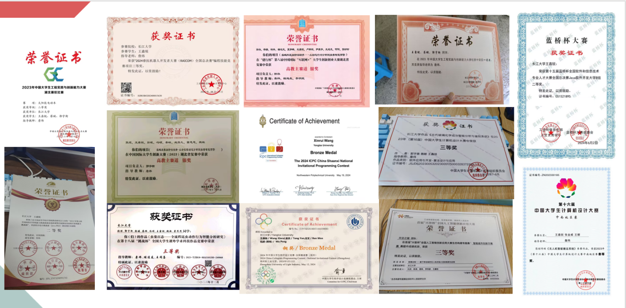 奖学金”“三好学生”“优秀共青团员”等奖励和荣誉称号。在科研竞赛方面表现突出,曾获icpc全国邀请赛铜奖、中国大学生程序设计竞赛全国邀请赛铜奖、“挑战杯”全国三等奖、蓝桥杯软件设计赛道组全国二等奖、睿抗caip编程技能赛全国三等奖、中国大学生计算机设计大赛全国三等奖等一系列奖项。现已成功保研至东北大学。