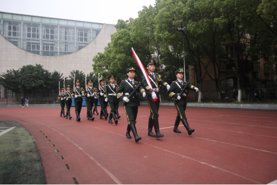 全体师生合唱红歌《我和我的祖国》、《长江之歌》,响亮的歌声飘扬在操场上,献礼建党100周年。随后,在全体师生的注目下,英姿飒爽的国旗护卫队护送鲜艳的五星红旗入场,伴随着庄严的国歌,五星红旗冉冉升起,迎风飘扬。接下来,学生代表叶星妤发表题为《诵读百年党史,歌颂百年华诞》的演讲,希望同学们能够以史为鉴,了解党的发展历史,为新中国的建设贡献自己的力量。
