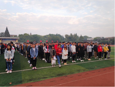 于东校区田径运动场举行升旗仪式,学院党委副书记颜学俊老师、全体专兼职辅导员及东校区全体学生参加本次升旗仪式。