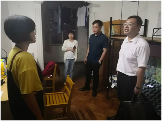 院长崔艳荣、副院长宋文广、学院党委副书记颜学俊、研究生辅导员付盈主任走访2019级全体硕士研究生的学生宿舍,深入了解他们的思想、学习、生活、安全、卫生等情况。