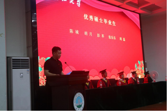 伴随着温馨的暖场视频,典礼正式开始,全体成员起立奏唱国歌。学院党委副书记颜学俊宣读了2021届优秀毕业生表彰文件,今年学院共有24名本科生和5名研究生被评为“欧乐影院