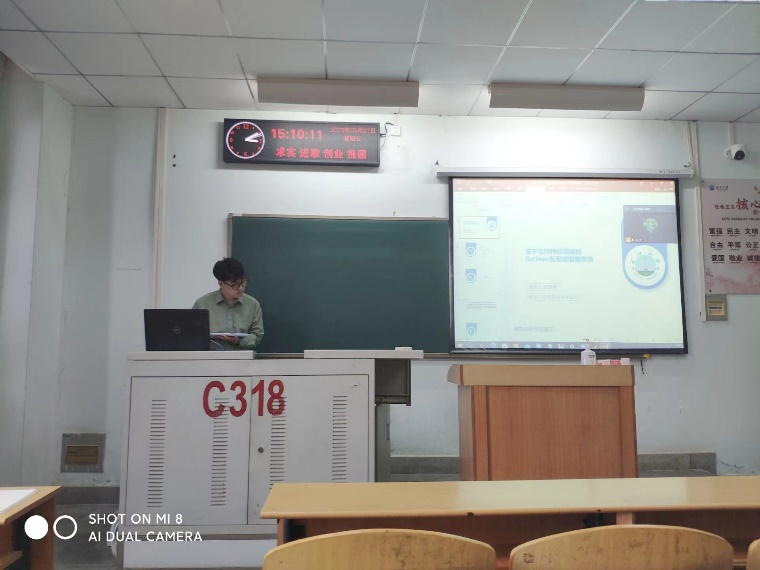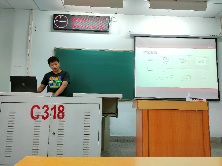 6位研究生依次登台演讲,分别围绕各自的研究方向,为同学们分享了6个课题:基于深度残差收缩网络的故障诊断,基于深度学习的机械故障诊断,基于faster r-cnn的钢材压坑检测,基于卷积神经网络的Retinex低照度图像增强,视频拷贝检测,聚类算法。