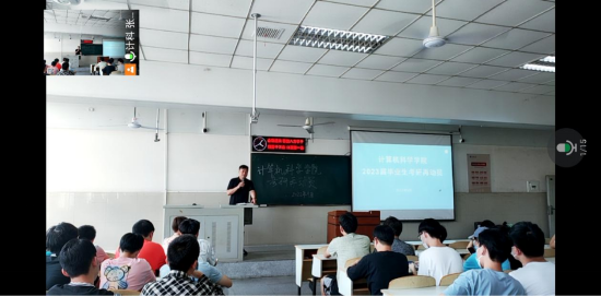 于2022年9月14日下午4点在东校区12教104教室举行了考研再动员大会,出席本次会议的有计算机学院院长崔艳荣、党委副书记颜学俊以及2019级全体考研同学,会议线上线下同步进行。