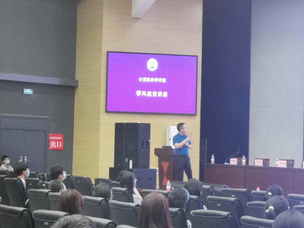 然后,詹炜老师以“爱探究”为主题,严肃强调了综合素质和多面发展的重要性。当谈到本院的本科生导师率领学生们参加学科竞赛,并带动了大学生创新创业项目时,老师慷慨激昂地鼓励学生们:“青年创新蓬勃发展,专业融合应用大有可为。”随后,老师播放了本院已获得的两项顶级赛事互联网国奖的参赛和获奖视频,在场的学生们发出了惊讶的感叹,同时一颗颗同样有着创新创业,参与学科竞赛的萌芽由此发根发芽。