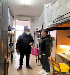 全体院领导、辅导员、班主任在学院院长、书记的带领下一起走进学生宿舍,看望返校的学生。