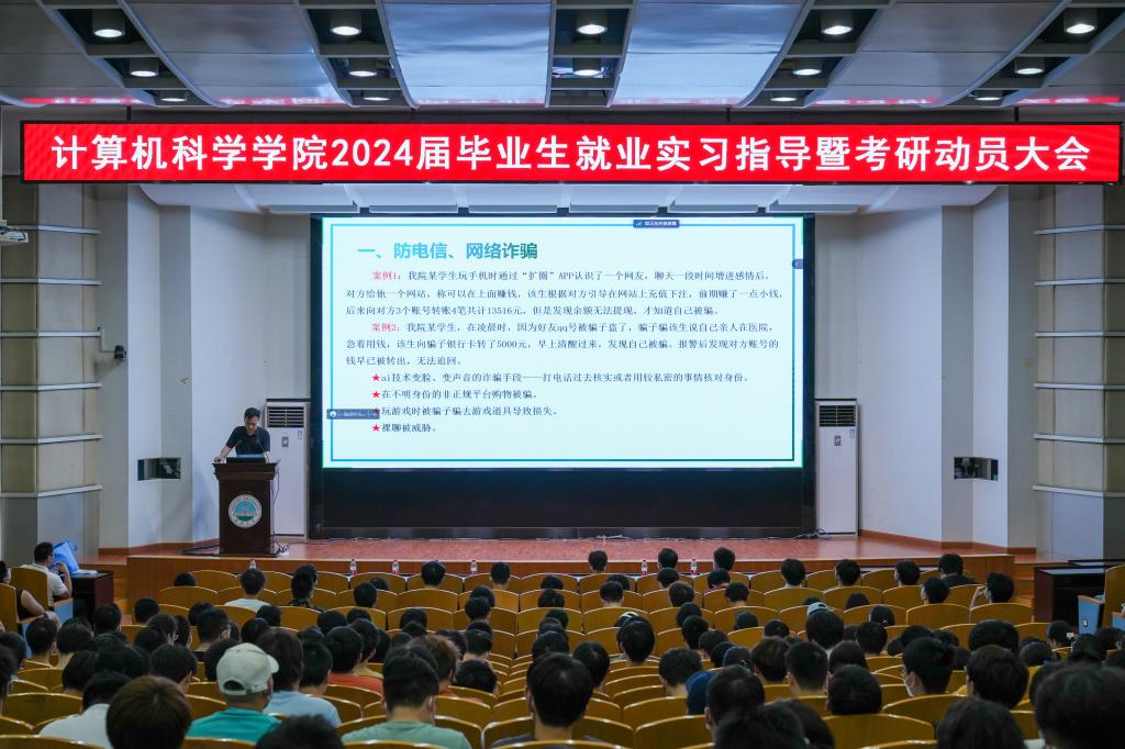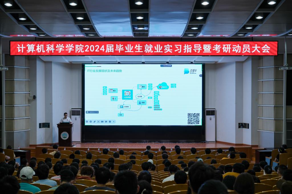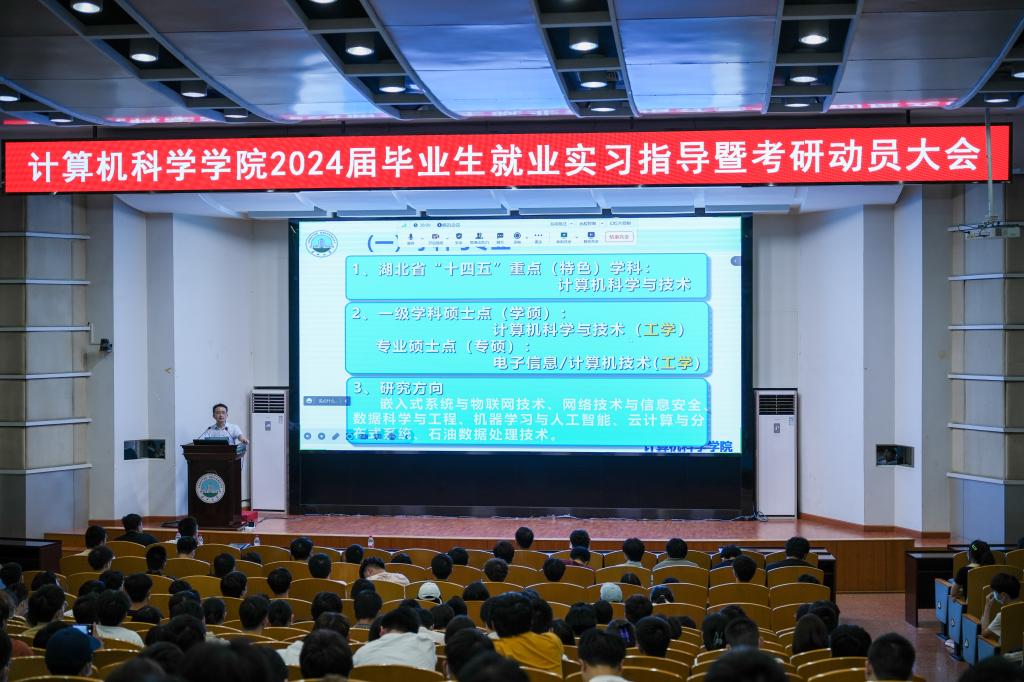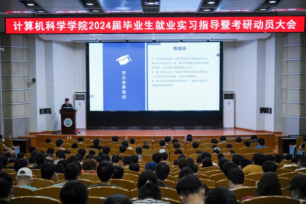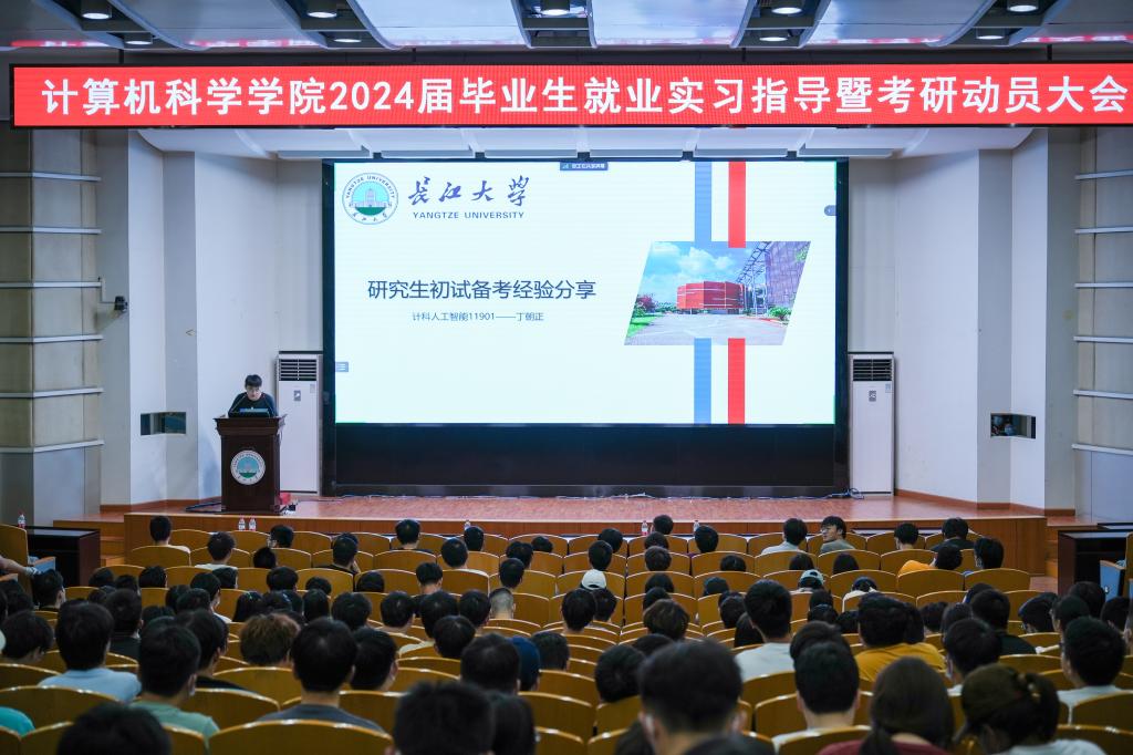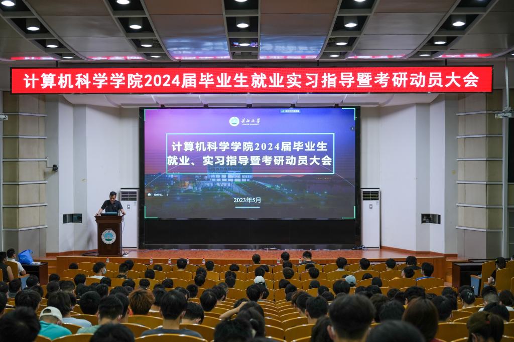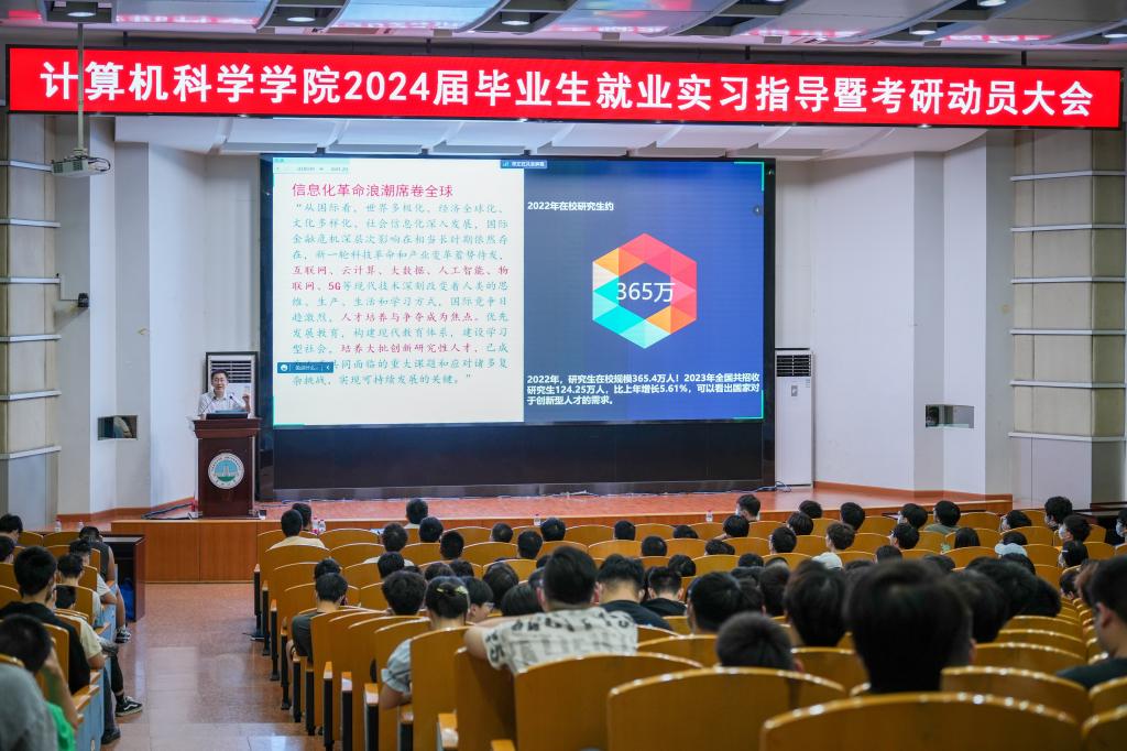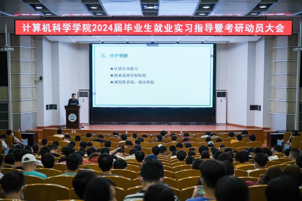 在12教405报告厅和12教404教室召开2024届毕业生就业实习指导暨考研动员大会。学院党委副书记颜学俊,副院长詹炜、宋文广,学工办主任付盈,就业专干余珺瑞,2020级辅导员高滢以及2024届毕业生参加会议。会议由颜书记主持。