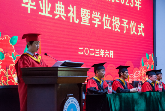 下午两点,毕业典礼在暖心视频的共同记忆中拉开帷幕,主持人宣布典礼正式开始,全体成员激昂奏唱庄严国歌。首先学院党委副书记颜学俊宣读2023届优秀毕业生名单,今年本院共有70名本科生和8名研究生被评为欧乐影院