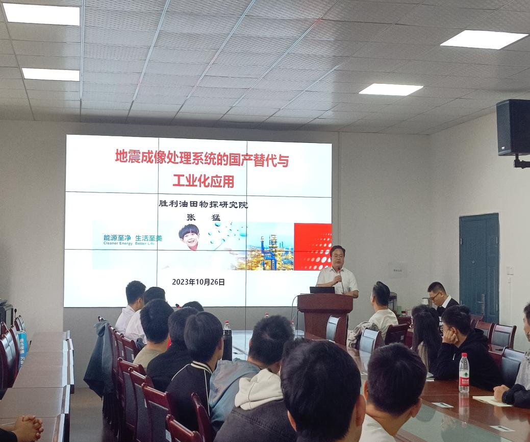 勘查技术与工程专业2003届校友、胜利油田物探研究院首席专家的张猛以《地震成像处理软件的国产替代与工业化应用》为题作专题报告。报告会由学院党委书记郑健主持,胜利油田物探研究院信息技术室副经理史进、胜利油田物探研究院组织科主办王钟远,以及欧乐影院