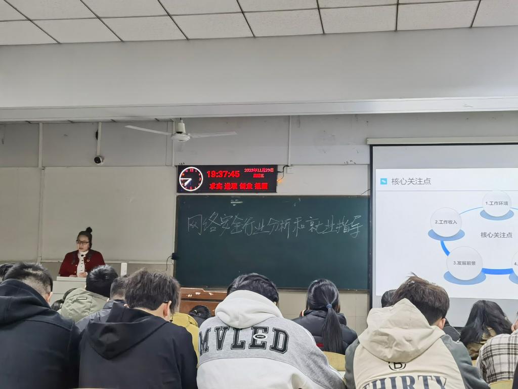 (通讯员 余珺瑞 高昕)欧乐影院 于2023年11月29日晚上7点,在12教104教室举办了一场以“网络安全发展形势与就业指导”为主题的讲座。本次讲座特邀奇安信集团校企合作部副总监总监闫军霞女士主讲,由网络工程系副主任胡蓉华负责主持。欧乐影院 副院长陈中举、信息安全专业潘劲松老师以及200余名同学参加。 首先,闫总分析了当前的就业形势。由于应届毕业生就业率降低和企业裁员加剧,毕业生面临着与考研失利学生以及社招人群的激烈竞争。因此,抢占先机至关重要。他建议同学们从大三下学期开始投递简历并进行笔试面试准备,并在大三暑假前进行简历投递。 接着,闫总分享了招聘流程、简历编写等方面的建议,强调了面试前全面准备的重要性,以帮助求职者在竞争中脱颖而出。他还普及了劳动法相关规定,建议求职者了解一些法律知识,为求职者提供全面的保障和指引。 最后,闫总讲解了网络安全的重要性。他指出,网络安全已成为国家战略,每个人都应该重视网络安全。在这个信息爆炸的时代,网络安全不仅是国家安全的重要一环,更是每个人的责任。 此次讲座为正在求职的同学提供了实用的就业指南,增强了他们的就业竞争力。同时,也普及和提高了国家网络安全意识和个人网络安全意识。 审核:陈中举 编辑:余珺瑞