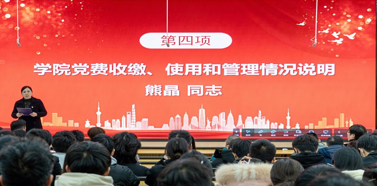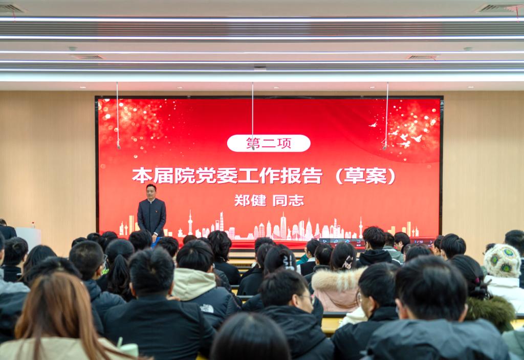 会上,学院党委书记郑健代表本届院党委作题为《坚持立德树人提升办学能力--奋力开创高水平学院建设新征程》的工作报告(草案)。报告回顾了上届党委换届以来,欧乐影院 党委在校党委的坚强领导下,面对新形势和新任务,结合欧乐影院 使命、远景和各项中心工作,团结广大党员和师生员工,在思想政治教育、组织建设、党风廉政建设、意识形态工作、统战工作、群团工作和学院发展等方面都取得了可喜成绩,同时报告也分析了学院党委工作面临的形势与挑战,明确了学院未来发展的重点工作和目标任务。全体党员听取并审议了院党委的工作报告(草案)、学院党费收缴、管理和使用情况报告。