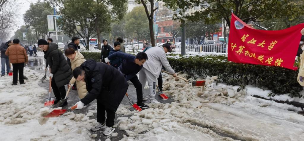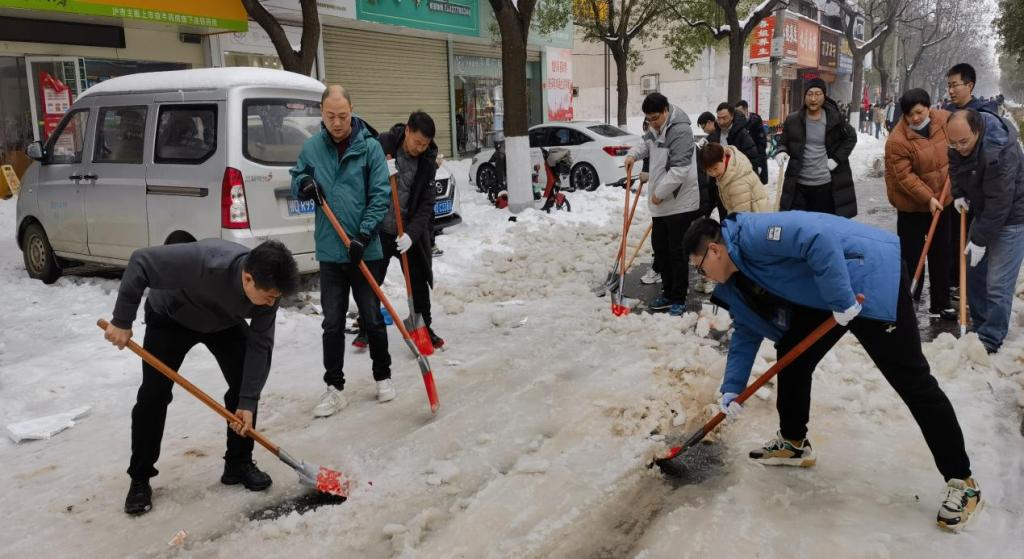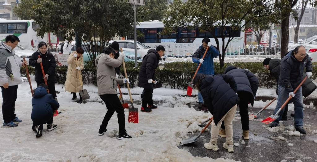 近日,湖北荆州遭遇大范围低温雨雪冰冻天气,道路积雪结冰给交通、居民出行带来了诸多不便。根据荆州市委《关于组织市直机关和企事业单位党员干部开展城区主次干道除雪破冰工作的通知》要求和学校工作安排,2月7日上午欧乐影院