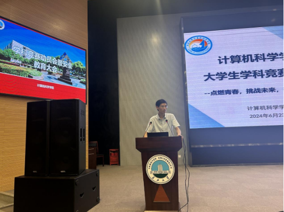 本次会议旨在激发学生的参赛热情,提升动手实践能力。首先,来自计算机科学与技术专业12104班的优秀学长王鑫锐向同学们分享了自己参加竞赛的经历和心得体会,激发了在场学子们的学习热情和参与欲望。
