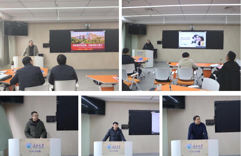 院长助理雷鸣通过SWOT分析模型,系统阐述了国际联合培养、辅修学位教育等多元化人才培养体系的构建路径;党委副书记肖彬运用PDCA循环管理理论,构建“思想引领-实践育人-就业服务”三维学生工作体系;副院长刘波涛通过可视化数据图谱,揭示科研工作“量质齐升”的突破方向;副院长陈中举以OBE教育理念为指引,围绕工程教育认证、一流专业建设等关键指标,聚焦本科教学质量提升“十大行动计划”;副院长詹炜聚焦研究生教育全过程管理,提出“导师能力提升工程”和“研究生创新赋能计划”。
