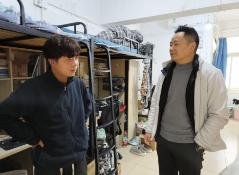 在学生宿舍,学院领导与同学们亲切交谈,仔细询问他们的生活情况,包括住宿条件是否舒适、日常生活是否便利等,同时特别强调了宿舍用电安全和卫生问题,鼓励同学们营造一个整洁、安全、和谐的居住环境。辅导员和班主任老师则与学生们分享了大学生活的经验和心得,耐心解答同学们在学业规划、职业发展等方面的困惑,与个别重点学生开展了谈心谈话活动。