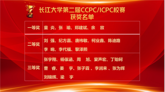 经过激烈角逐,本次大赛最终评选出一等奖4名,二等奖8名,三等奖12名。这些获奖同学获奖选手将受邀加入长江大CCPC/ICPC校队接受集中训练,经筛选后组队代表我校参加2025年CCPC/ICPC系列赛事。据悉中国大学生程序设计竞赛(简称CCPC) 和国际大学生程序设计竞赛(简称 ICPC)都是面向大学生的年度性程序设计竞赛,作为高水平程序设计竞赛的典型代表,在全球范围内有着极为广泛的参与度和深远的影响力,吸引了众多国际知名高校的学生积极参与,成为国际间大学生交流编程技术和创新理念的重要舞台。