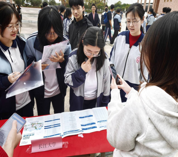 的办学魅力。他们详细讲解学校招生优势、录取分数线、专业设置、奖助体系等核心信息;为高一学生分享真实大学生活与成长感悟,为高三学子讲解优势学科、志愿填报技巧,并结合自身经历分享备考方法与心态调整策略。不少团队还创新宣讲形式,发放文创礼品、设置互动问答,融入地域文化元素拉近与听众距离,让宣讲更具吸引力和实效性。