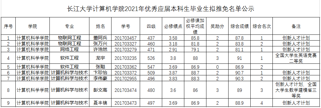 公示期为9月25日-26日,如有异议,请在公示期内致电学院教学办公室。