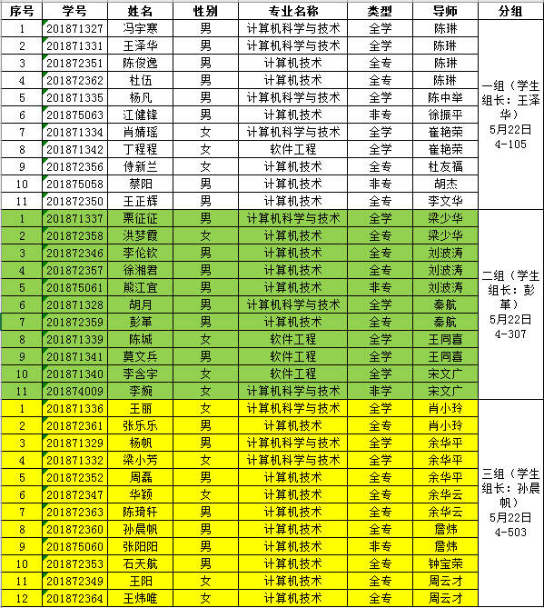 四、答辩学生分组(按指导老师回避原则划分,序号即为答辩顺序)