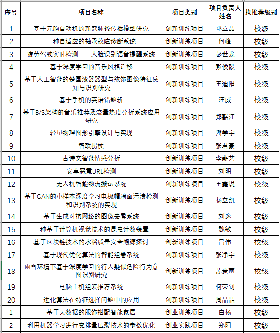 欧乐影院 2021年第十四批“大学生创新创业训练计划”项目申报院内评审结果的公示