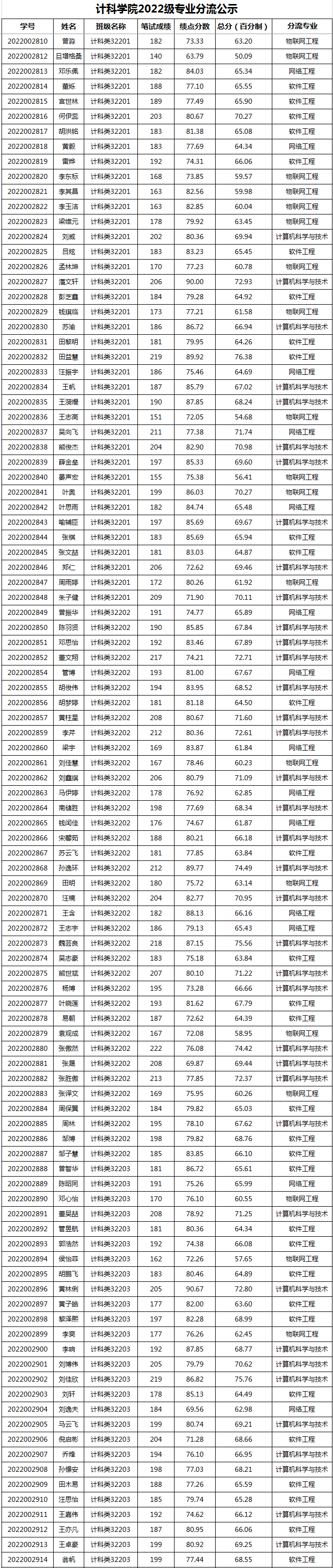 欧乐影院 2022级专业分流结果公示