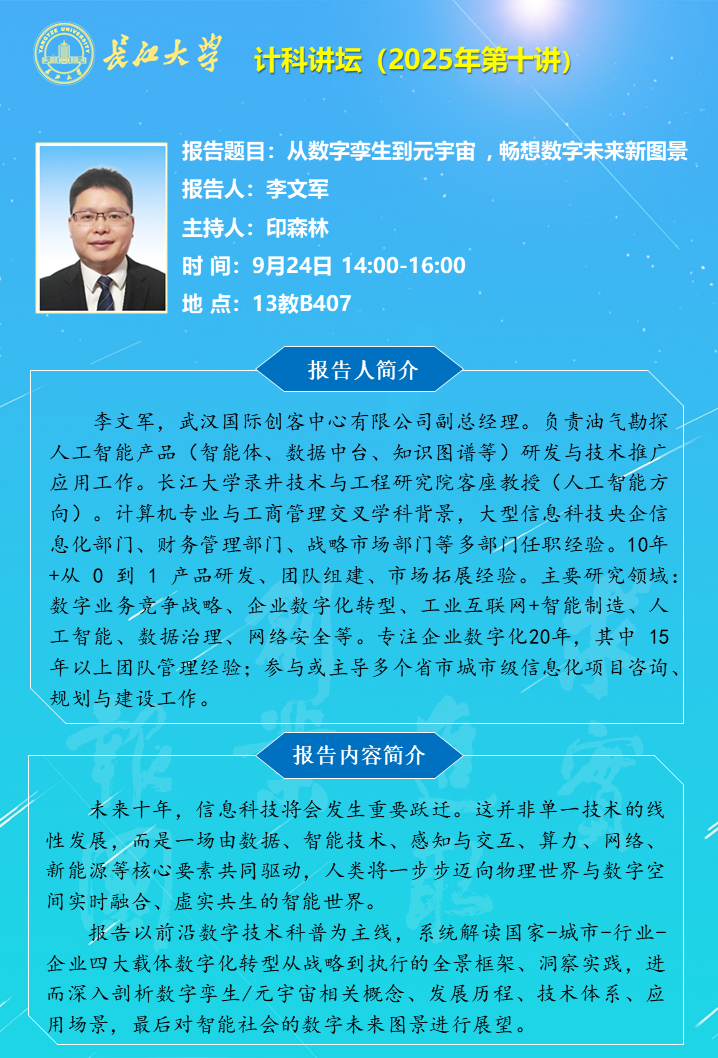 计科讲坛(2025年第十讲):从数字孪生到元宇宙 , 畅想数字未来新图景