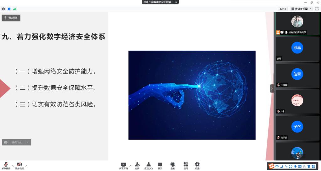 院长崔艳荣以《“十四五”数字经济发展规划》为题作形势政策报告,学院一二年级研究生通过腾讯会议参会。