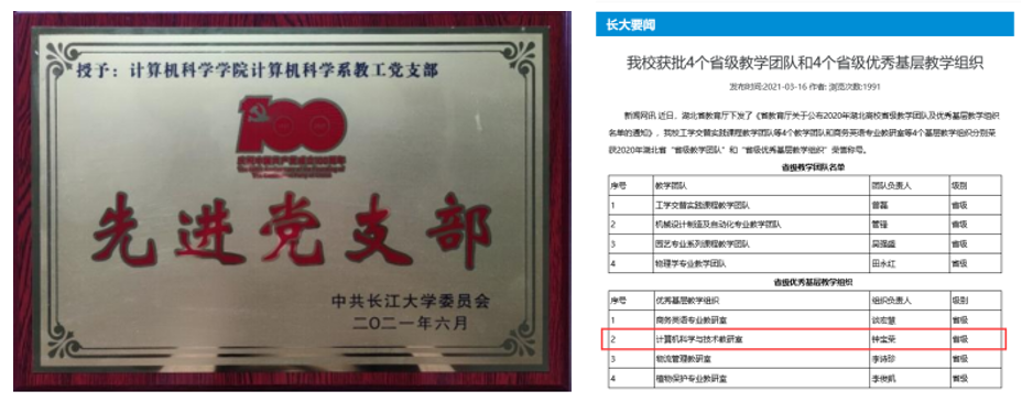 计算机科学与技术系教工党支部荣获荆州市“红旗党支部”称号,并成功获批为欧乐影院