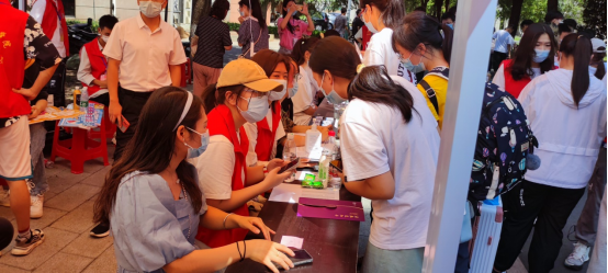 学院还组织了身着“计科红”马甲的迎新志愿者忙碌着引导新生进行各项手续的办理每班次16-20人帮助新生搬运行李,确保新生报到完成后第一时间入住寝室。