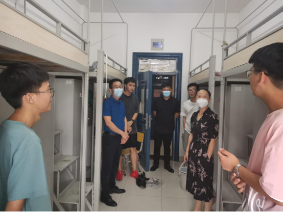 下午15:30,学院院长崔艳荣、党委书记黄群俊、副院长向宇、副院长詹炜、党委副书记颜学俊与辅导员郭帅一起走访了学生寝室,与学生亲切交流。