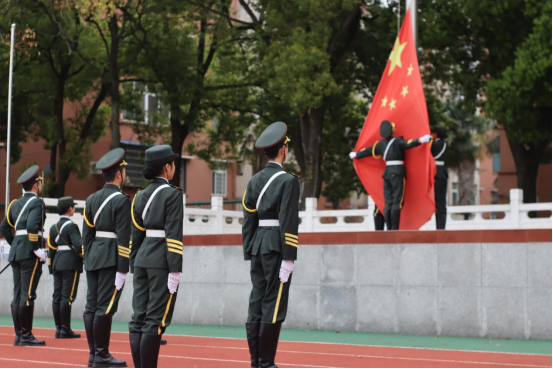 升旗仪式于校西区田径场顺利举行。学院党委副书记颜学俊、2022级辅导员郭帅、全体2022级本科生参加活动。