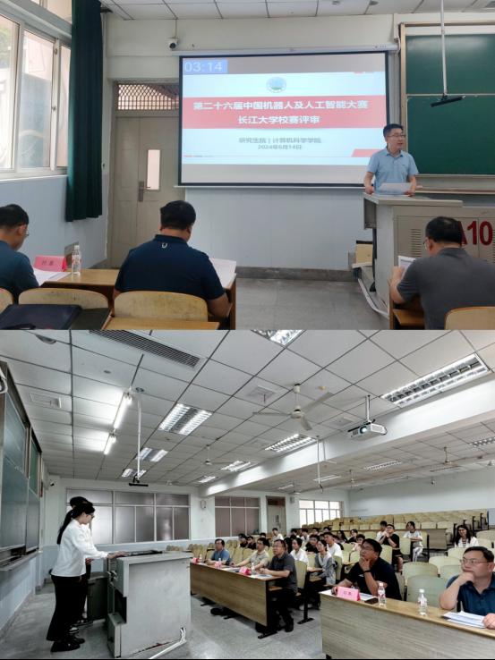 答辩现场,来自全校的20支研究生项目团队主讲人对其项目进行了PPT演讲,主要围绕项目意义、创新之处、取得成果等方面展开。各项目团队将所学人工智能理论知识结合不同领域开展技术应用探索,包括医疗健康、交通运输、农业农村以及能源生产等。根据赛事上推规则,最终确定了8个项目上推,将参加于6月22日举行的湖北省省赛。